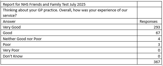 Please use the link below to view our Friends and Family Test responses for July 2025.
