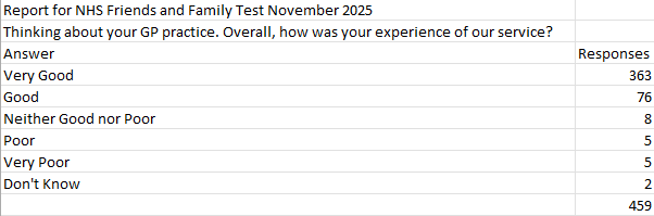 Please use the link below to view our Friends and Family Test responses for November 2025.